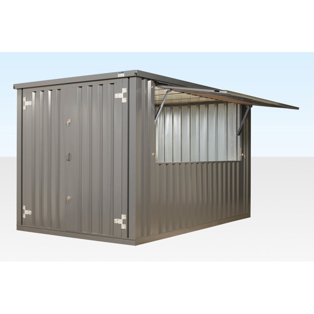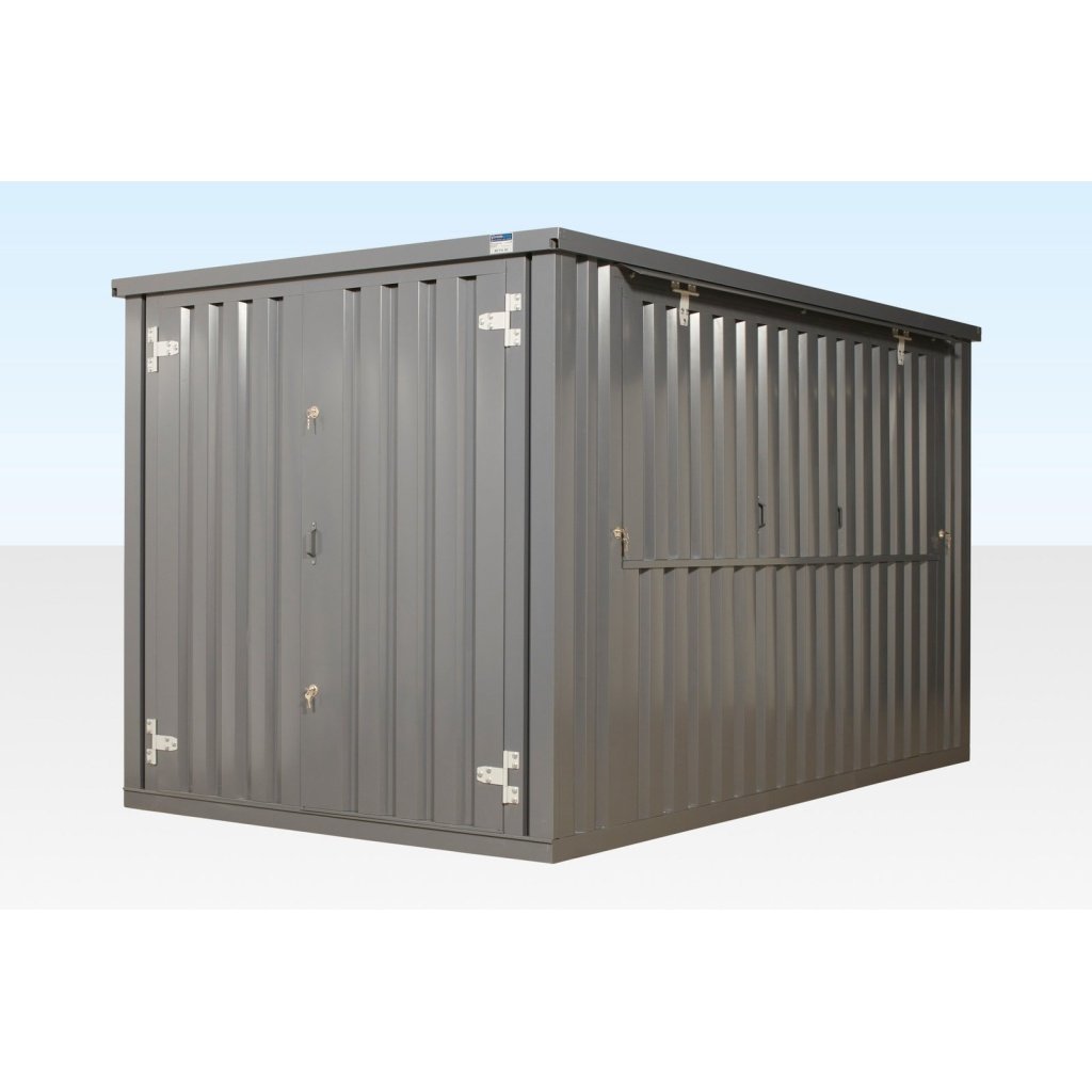Contenedor plano con trampilla de apertura lateral (con bisagras desde arriba) montado en el lateral de 3 m. Esta escotilla se puede colocar en cualquiera de los lados largos para adaptarse a sus necesidades.