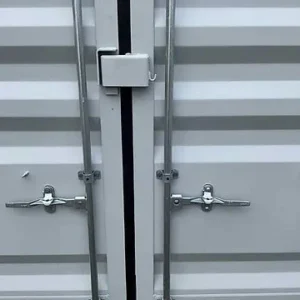 Puertas exteriores dobles con bisagras con dos barras de bloqueo por puerta en un extremo de 8 pies y en un lado de 40 pies con tres barras de bloqueo en cada puerta
