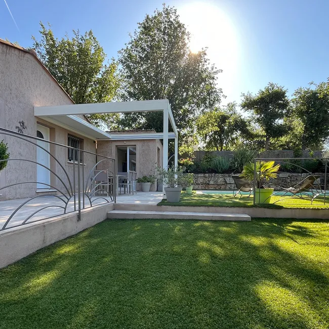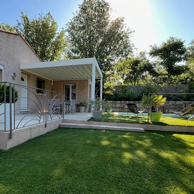 La pérgola retráctil de alta gama SIROCO de Intersun, equipada con lamas de aluminio tipo acordeón, le permite ajustar la luz solar de su terraza en todo momento. A diferencia de los sistemas fijos, ofrece la flexibilidad de descubrir su espacio cuando lo desee, mientras garantiza una protección solar óptima. Su estructura de aluminio extruido resiste las inclemencias del tiempo y los rayos UV, asegurando confort y durabilidad. Con su diseño elegante y minimalista, se integra perfectamente a cualquier tipo de arquitectura.