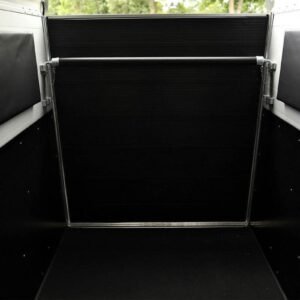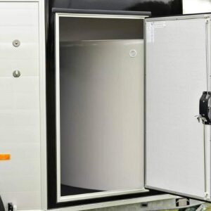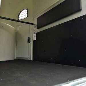 Está fabricado con techo y morro de fibra y paredes de madera finlandesa o aluminio según opción escogida para mayor robustez, con los laterales acolchados en el interior. Está homologado a 1600 kg con freno.