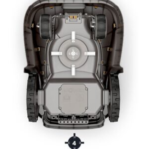 Su sistema de corte de alta calidad, con 4 cuchillas giratorias y patrones configurables para lograr un efecto rayado profesional, deja un acabado uniforme incluso en pendientes de hasta el 45 %. Es fácil de configurar desde el móvil y permite incluir áreas de exclusión.