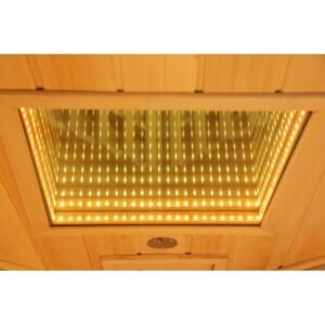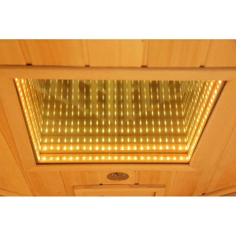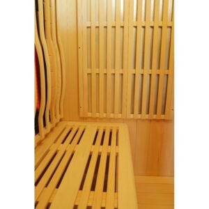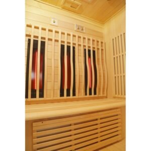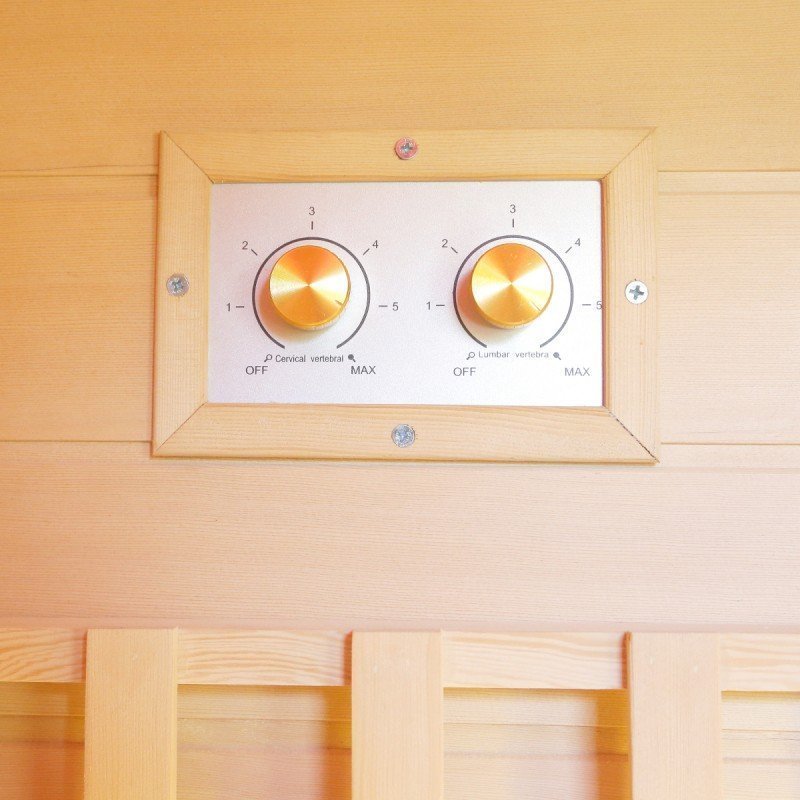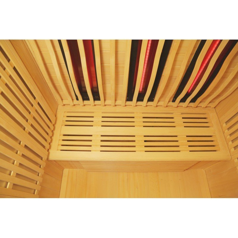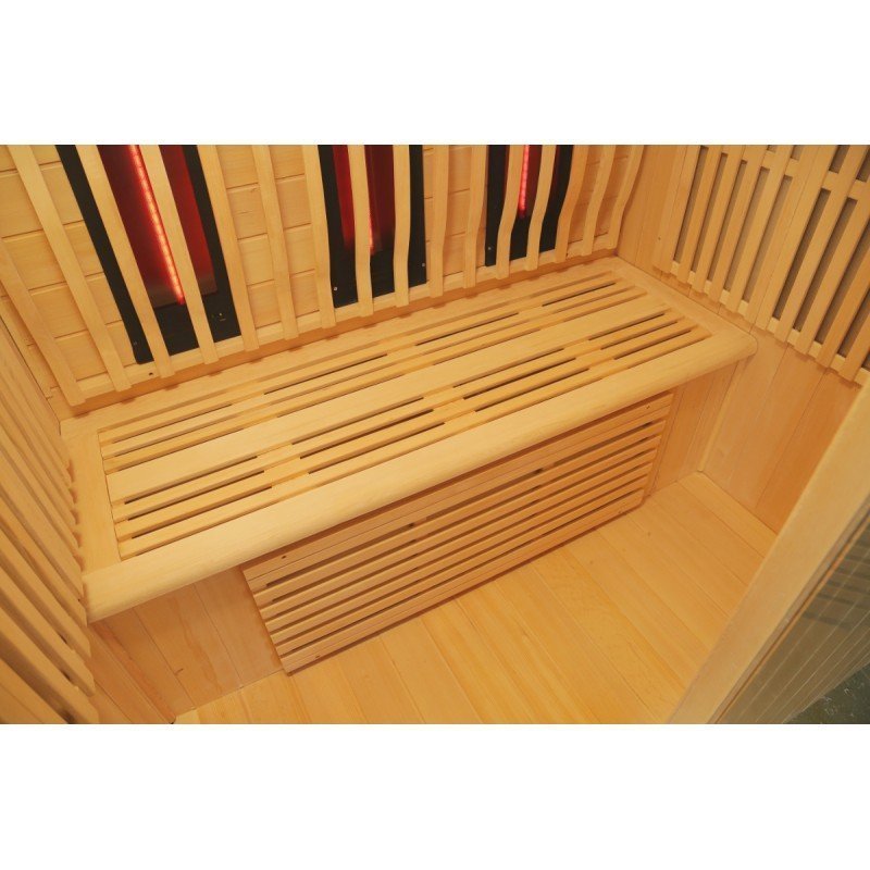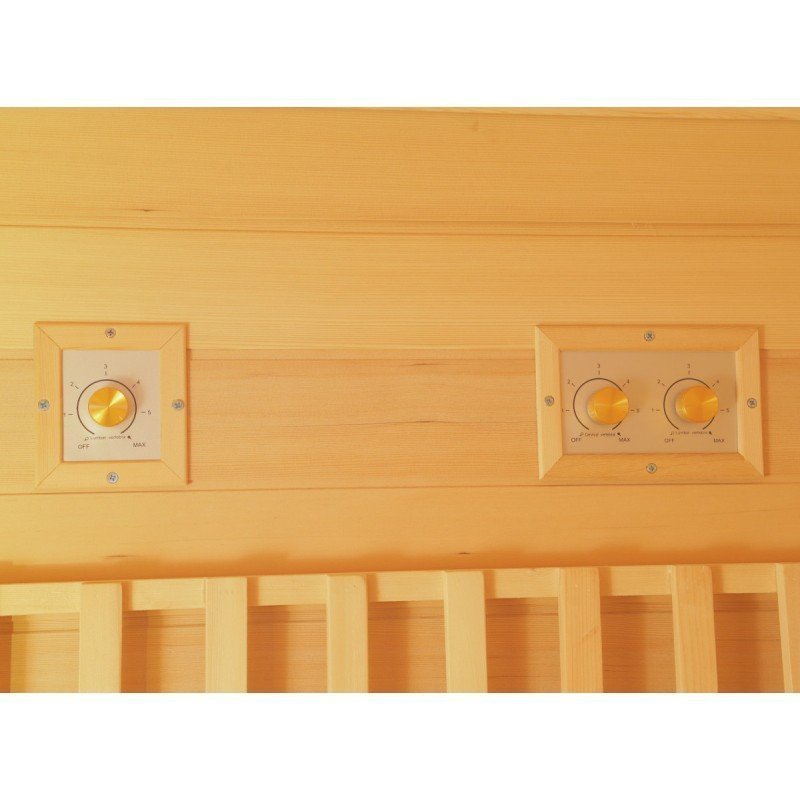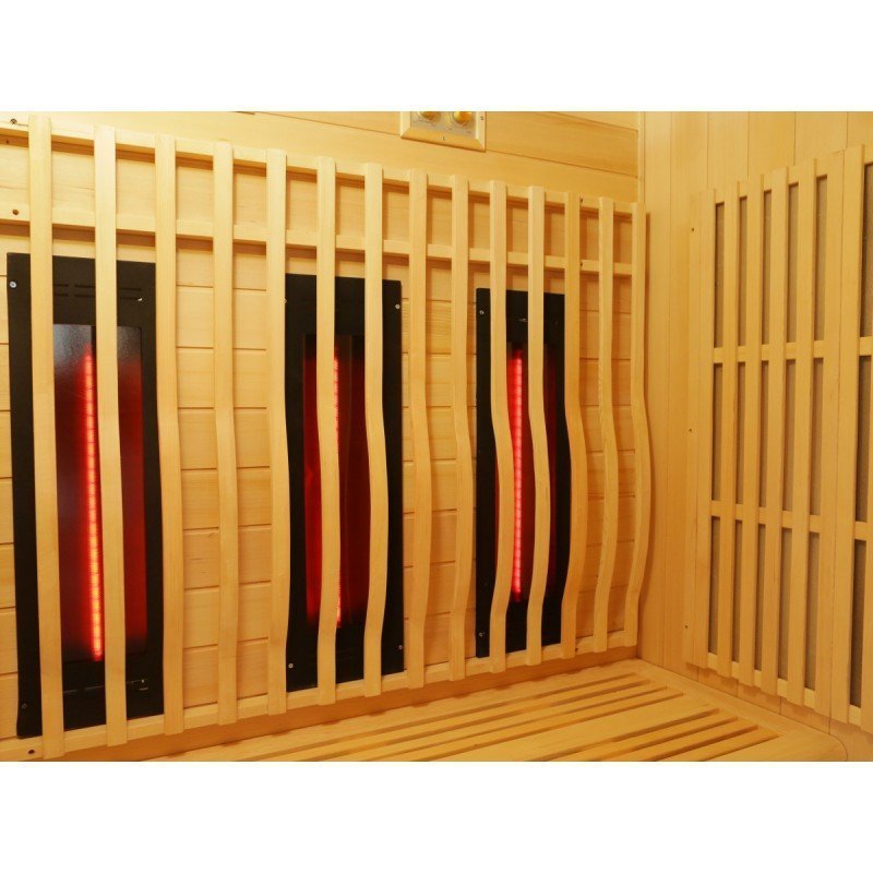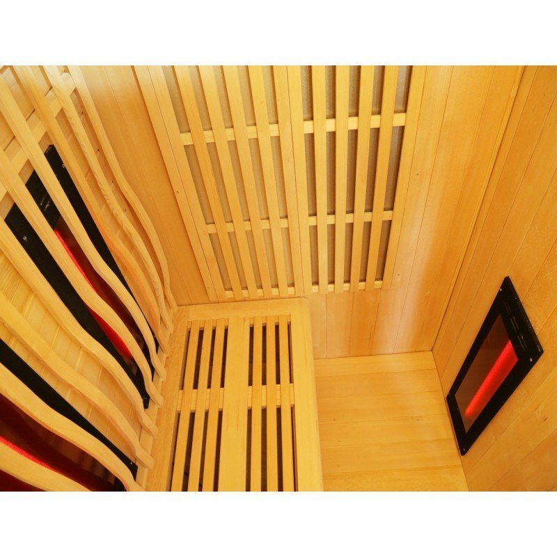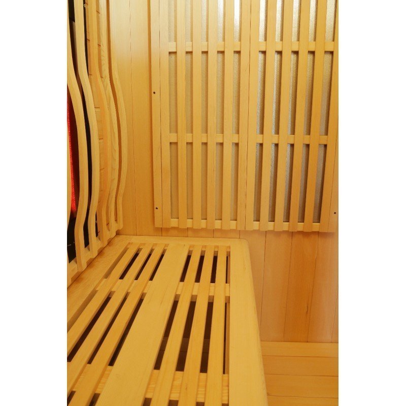 De hecho, el diseño de esta nueva gama se centra en la sobriedad y un aspecto de alta gama. Con paneles de madera canadiense y listones verticales que destacan por la base negra y el marco del techo. En el interior, el equipo es perfecto y la combinación de calentadores de carbón y luz roja (espectro completo) ofrece un rendimiento increíble. La cabina se calentará rápida y ampliamente, lo que le permitirá improvisar sesiones de relajación en cualquier momento, a diferencia de las cabinas tradicionales, que tardan varias decenas de minutos en calentarse. Los 2 tipos de paneles de calefacción se pueden gestionar de forma independiente entre sí para encender y apagar.