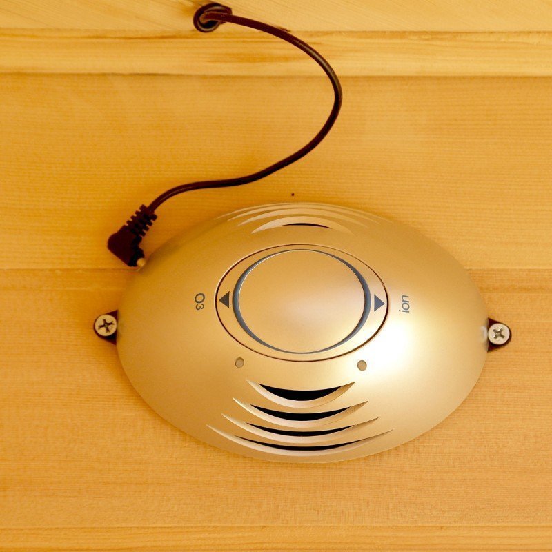 - El ionizador de oxígeno se usa para enfriar el aire dentro de la sauna matando los olores causados por las bacterias y eliminando las partículas en suspensión.
