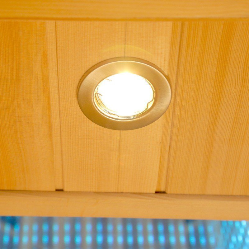 De fácil y rápida instalación, los paneles están premontados. Los paneles de abeto delanteros y traseros tienen un grosor de 45 mm (6,5 + 32 + 6,5 mm), los laterales son de 35 mm (6,5 + 23 + 6,5 mm) y, finalmente, los paneles del techo y del piso. 80mm (6.5 + 67 + 6.5mm). Puedes conectar la cabina de infrarrojos a cualquier toma de corriente de tu hogar, ya que solo requiere una conexión de 230V.