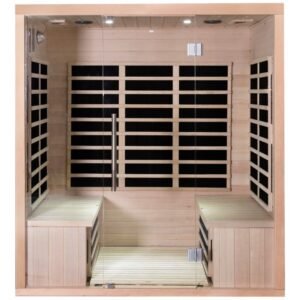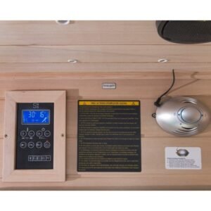 Crea una sala de estar acogedora y disfrute de los beneficios de esta sauna. Tiene todo para garantizar el máximo confort: panel digital (interior y exterior), funciones de MP3 / Iphone / Bluetooth / Smartphone, cromoterapia, compuesta por una multitud de pequeñas lámparas en el techo cuyos colores pueden cambiar. ¡La relajación ya no será un sueño!