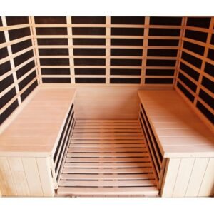 En tu sauna de infrarrojos en madera SNÖ, disfrutarás de un calor suave y seco cuya temperatura no supera nunca los 60 ° C. Es muy conveniente para las personas que no pueden soportar las altas temperaturas porque también pueden disfrutar de los beneficios de la sauna. Una sesión de 30 minutos, 3 o 4 veces por semana en su sauna SNÖ de 4 asientos, es suficiente para sentir tu cuerpo relajado y tu espíritu revitalizado.