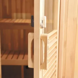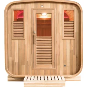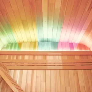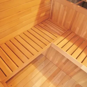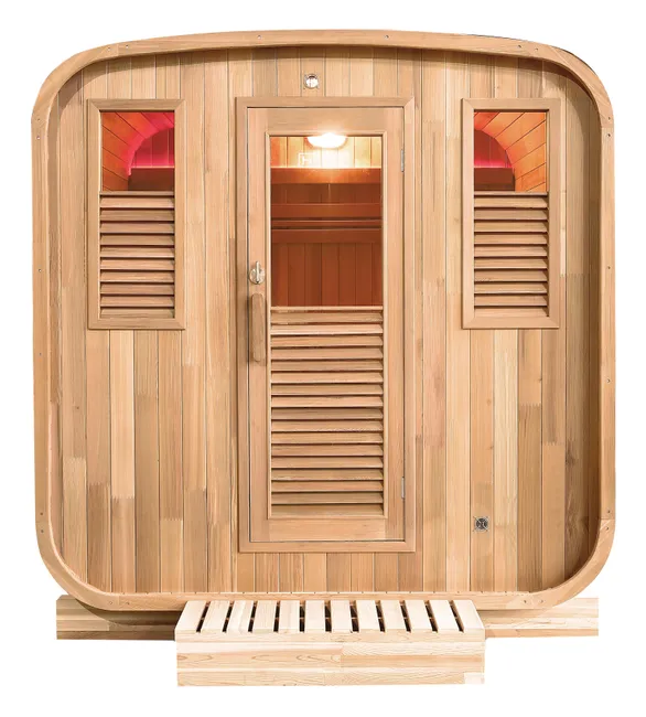 Sauna finlandesa Gaia Nova. Su cabina exterior es un remanso de paz compacto y confortable fabricada en picea de Canadá. Cuenta con banco superior reclinable con varias posiciones, reposacabezas confort, banco de doble altura, accesorios para saunas tradicionales y cromoterapia led. Estufa y piedras no incluidas.