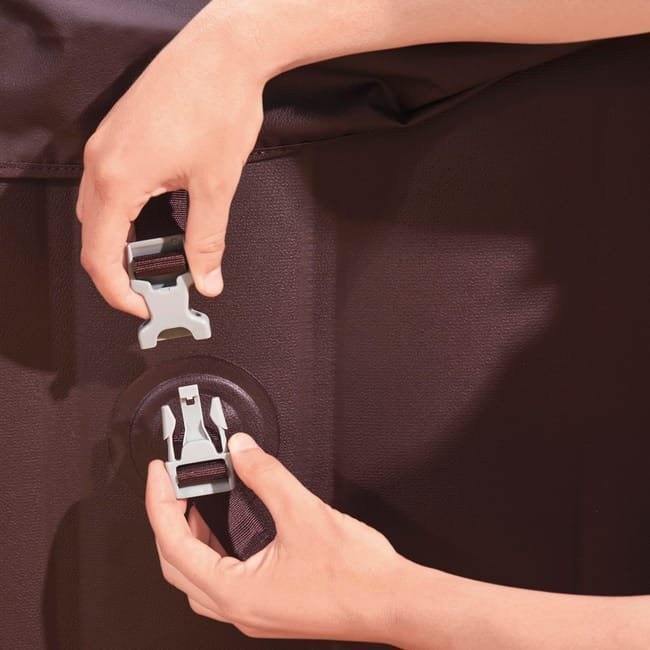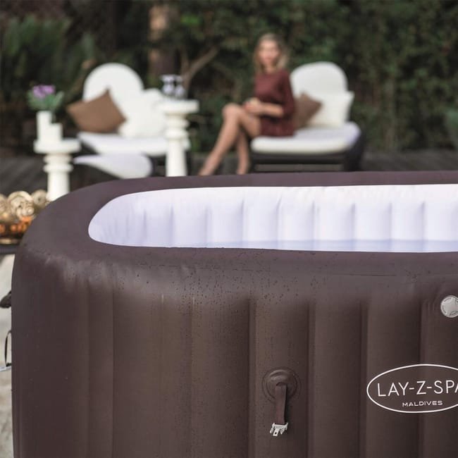 Spa de exterior hinchable Lay-Z-Spa® Maldives HydroJet Pro™ Maldivas de forma cuadrada, ideal para 7 personas. Sencillo, rápido y fácil de instalar, ofrece un aspecto elegante y una relajante experiencia de jacuzzi sin instalación profesional. Se incluyen luces led ColorJet de 7 colores para agregar ambiente y personalidad a tu entorno de spa. Sistema de masaje relajante: el sistema de masaje HydroJet Pro ofrece dos formas de relajarse en tu spa. Las 8 boquillas HydroJet rodean las paredes laterales para liberar chorros de agua específicos, mientras que las 180 aberturas AirJet liberan burbujas desde el fondo del spa para crear un ambiente cálido y burbujeante en la bañera de hidromasaje. Este relajante sistema de masaje te ayudará a relajarte y descansar. Construcción duradera: las paredes hinchables y las vigas internas de este spa están fabricadas con material DuraPlus™ duradero y resistente a las perforaciones. La función de calentamiento automático Freeze Shield™ incluida evita que los componentes internos se congelen durante las temperaturas más frías, lo que garantiza que puedas disfrutar de tu spa año tras año. Contenido: spa equipado con una bomba que hincha rápidamente el spa, lo calienta, ejecuta la filtración y controla el sistema de masaje: fácil y conveniente. Se puede acceder fácilmente a la bomba desde el interior del spa y cuenta con portavasos para bebidas y refrigerios. También se incluye un dosificador ChemConnect™ que mantiene el agua limpia y en buen estado al dispensar uniformemente la cantidad adecuada de cloro. El spa Maldives viene con una cubierta reforzada que bloquea el calor mientras no está en uso, además de evitar que el polvo y los residuos se acumulen en el agua. Medidas: 2,01 x 2,01 x 0,80 m (ancho x largo x alto).