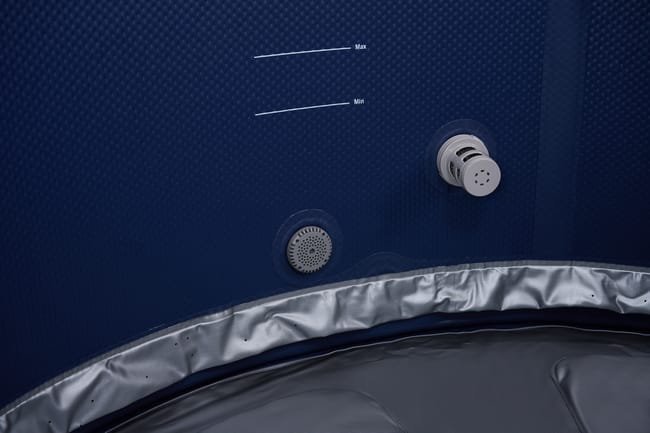 Spa hinchable, modelo NAVAL de MSpa diseñado para hasta 6 personas, con 138 salidas de aire con 3 niveles de potencia, equipado con un potente calentador de agua inteligente de 2.200W que ajusta su potencia según las necesidades de uso con temporizador para ahorro de energía programable con hasta 99h de antelación. Cuenta con un triple sistema de depuración del agua, capaz de filtrar 1.800l/h mediante una potente bomba a través de la filtración de partículas con filtro de cartucho (incluido junto con un recambio), la lámpara UVC que destruye los microorganismos y patógenos y un potente generador de Ozono O3 de 5.5W que destruye bacterias resistentes pudiendo reducir considerablemente el consumo de cloro u otros tratamientos químicos, además el tejido interior es anti-bacteriano lo que reduce la producción de bacterias en un 99%, como resultado el agua del spa se mantiene clara y depurada por más tiempo, con menos esfuerzo y un menor consumo. Además viene equipado con un motor silencioso e incluye sistema anti-heladas, pantalla táctil digital con bloqueo para niños y la posibilidad de control mediante Wi-Fi a través de su propia app. Fabricado con un material robusto y muy resistente y una tecnología avanzada que permite unas paredes más estrechas aprovechando al máximo el espacio interior. Incluye una cubierta térmica para mantener el calor y al agua limpia. Rápido montaje en tan solo 10 minutos.